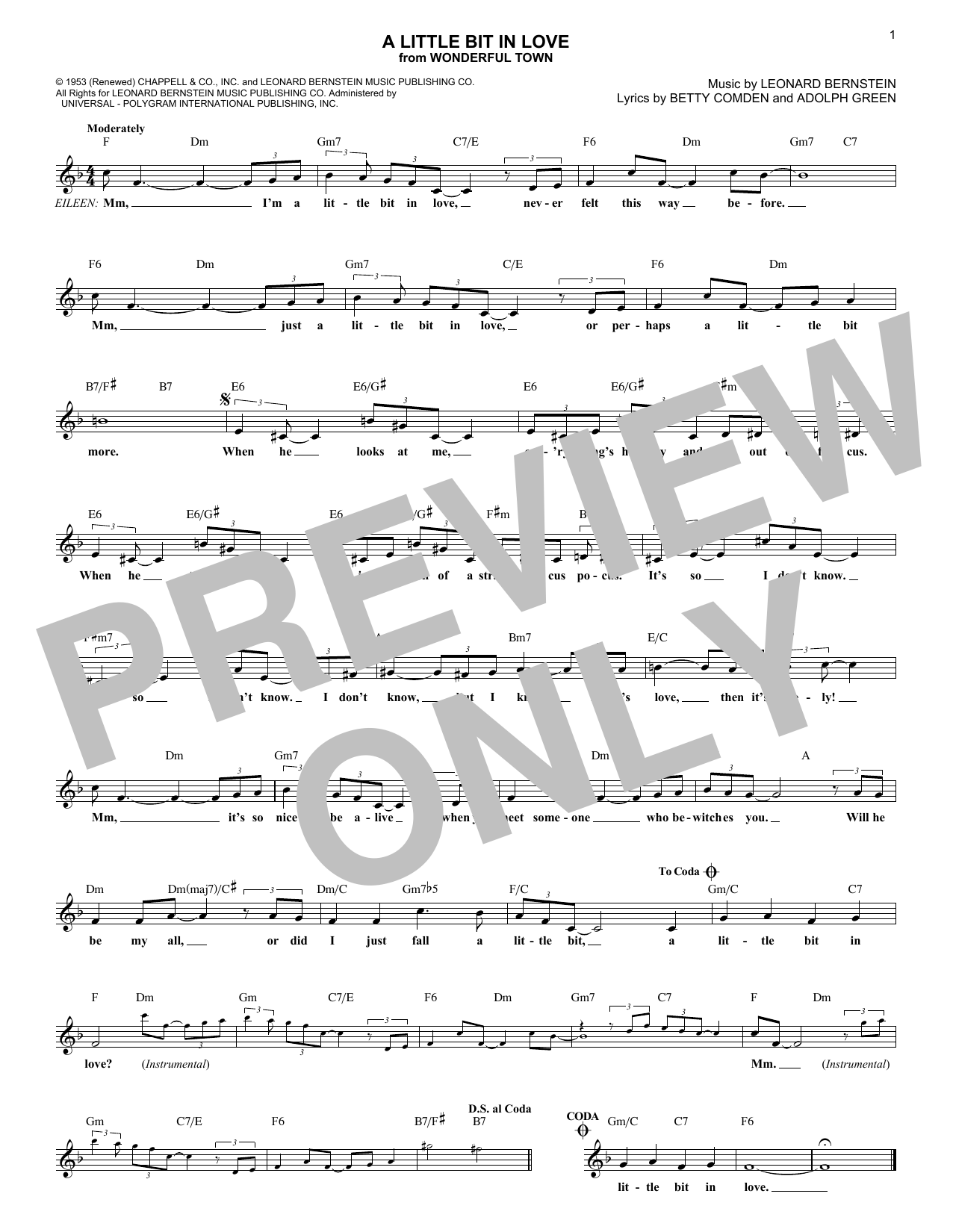 Adolph Green A Little Bit In Love sheet music, chords, lyrics - Printable PDF for Melody Line, Lyrics & Chords
