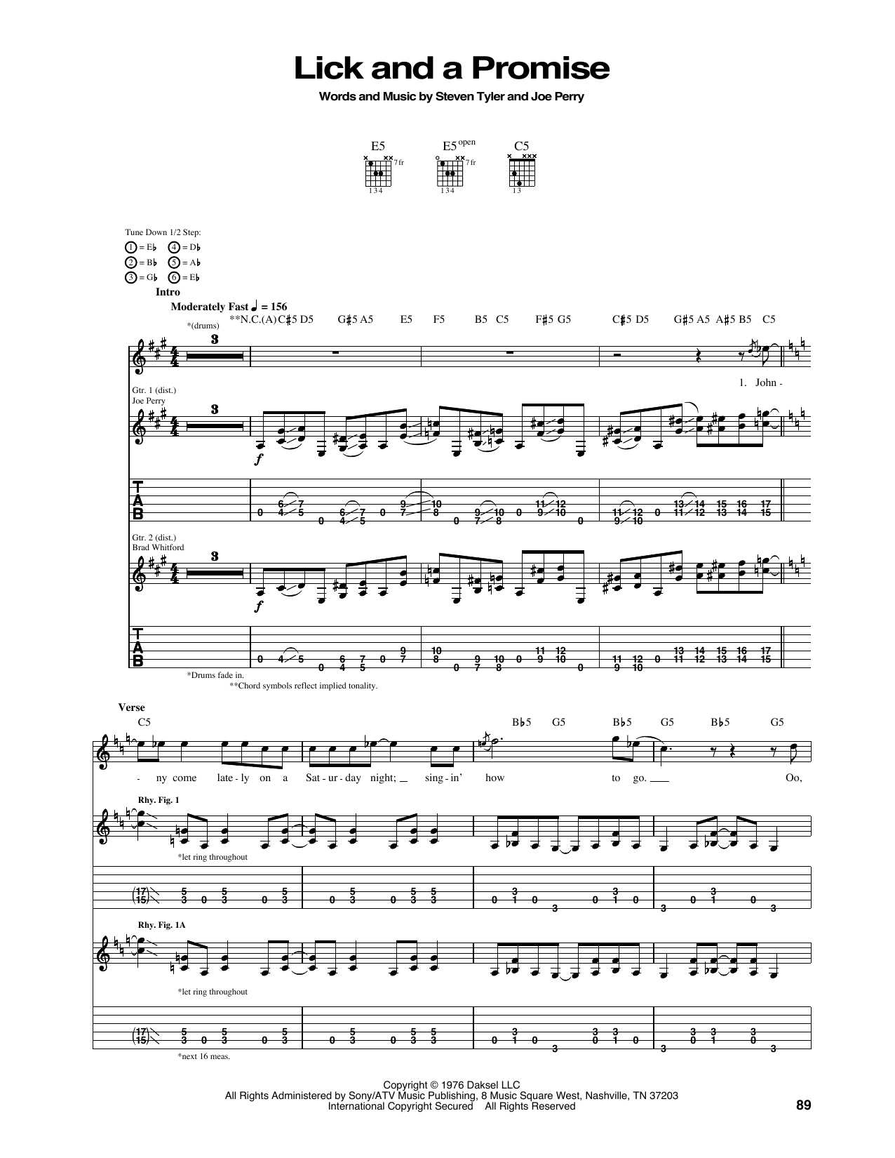 Download 10-Page Aerosmith Lick And A Promise sheet music | Printable PDF Digital Notes