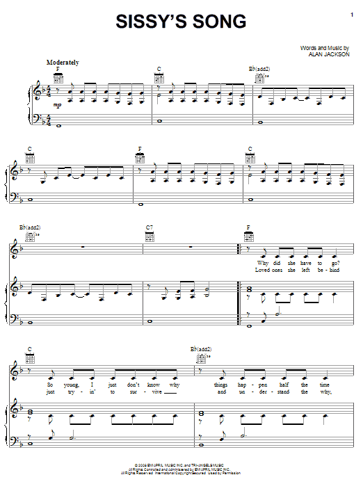 Alan Jackson Sissy's Song sheet music, chords, lyrics - Printable PDF for Piano, Vocal & Guitar (Right-Hand Melody)