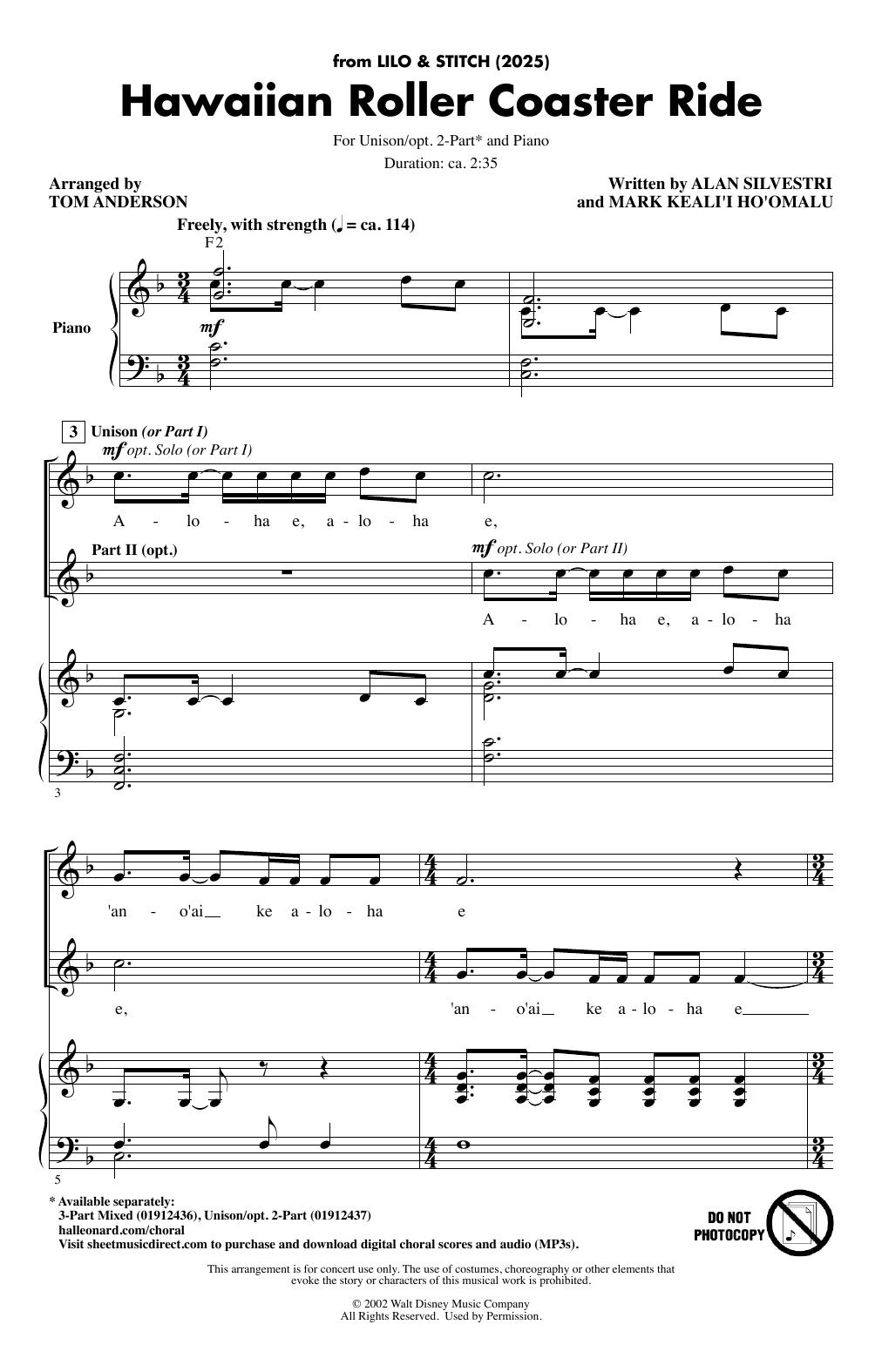 Download 14-Page Alan Silvestri Hawaiian Roller Coaster Ride (from Lily & Stitch) (2025) (arr. Tom Anderson) sheet music | Printable PDF Digital Notes