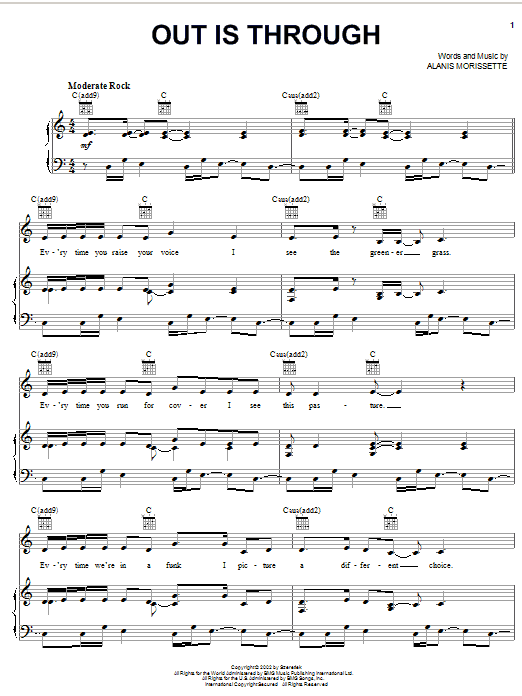 Alanis Morissette Out Is Through sheet music, chords, lyrics - Printable PDF for Piano, Vocal & Guitar (Right-Hand Melody)