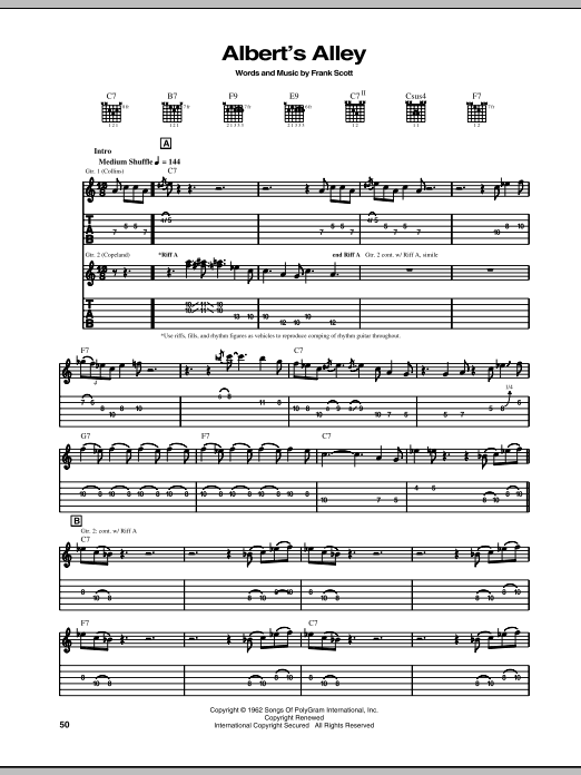 Albert Collins Albert's Alley sheet music, chords, lyrics - Printable PDF for Guitar Tab