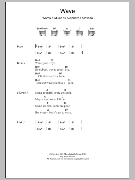 Alejandro Escovedo Wave sheet music, chords, lyrics - Printable PDF for Lyrics & Chords