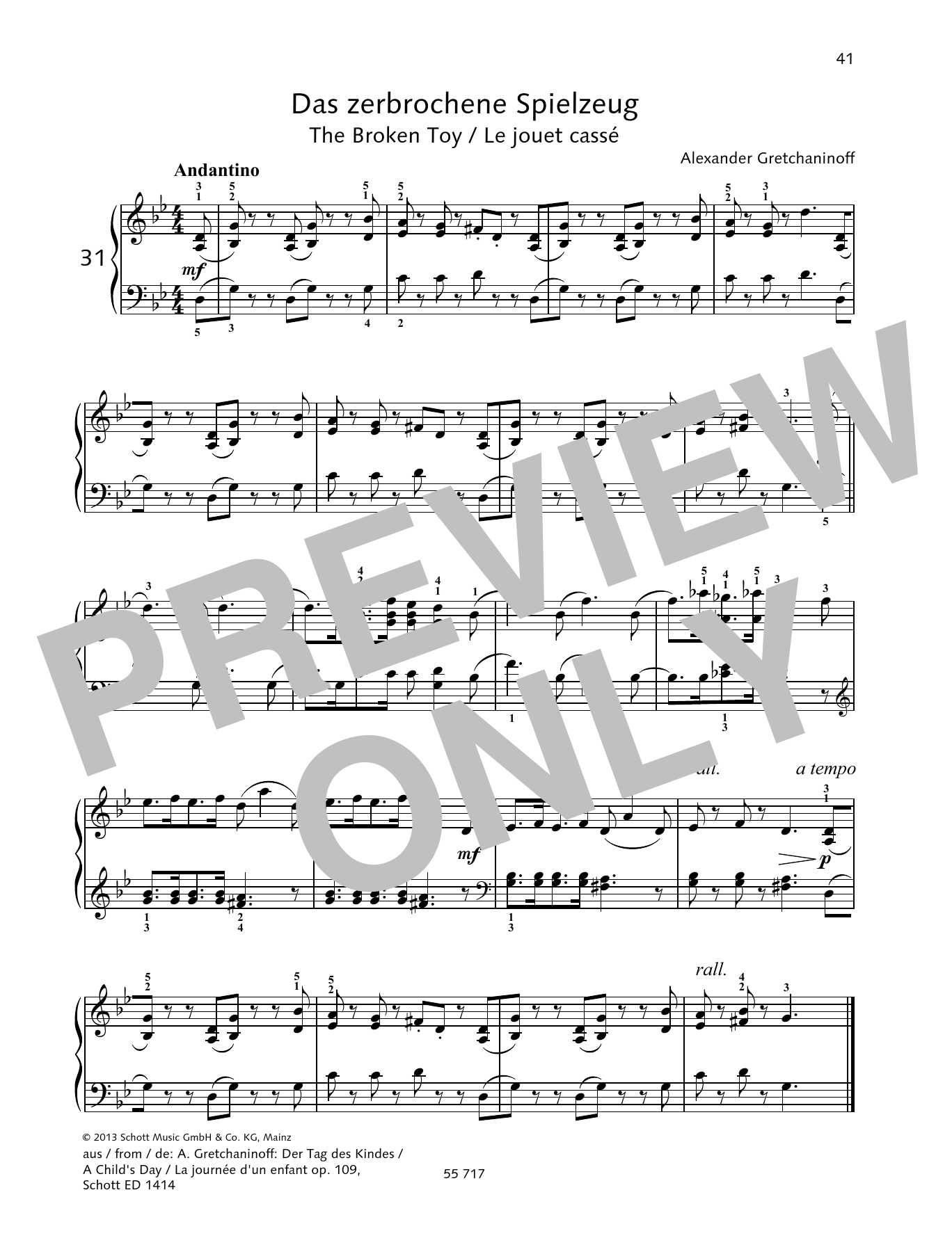 Alexander Gretchaninoff The Broken Toy sheet music, chords, lyrics - Printable PDF for Piano Solo