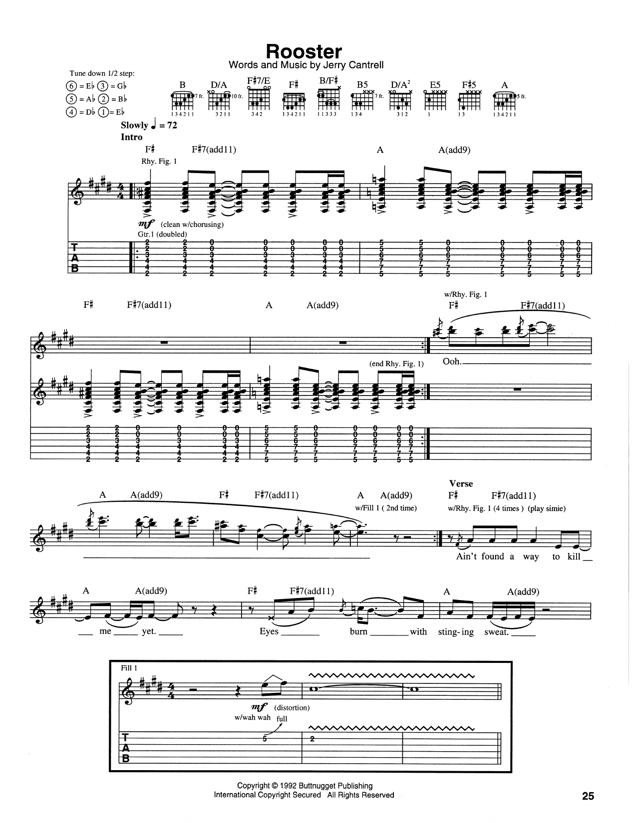Download 5-Page Alice In Chains Rooster sheet music | Printable PDF Digital Notes