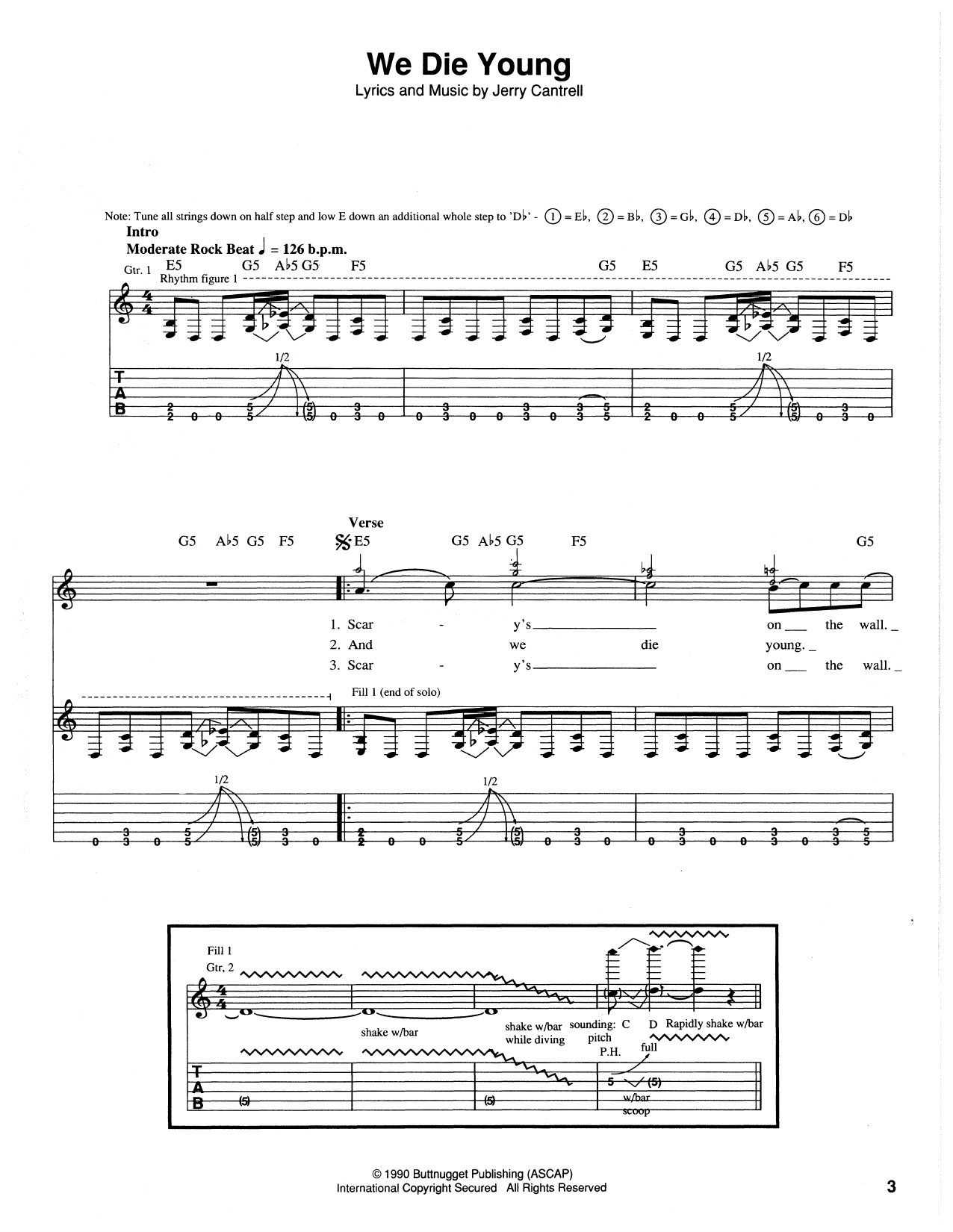 Download 5-Page Alice In Chains We Die Young sheet music | Printable PDF Digital Notes