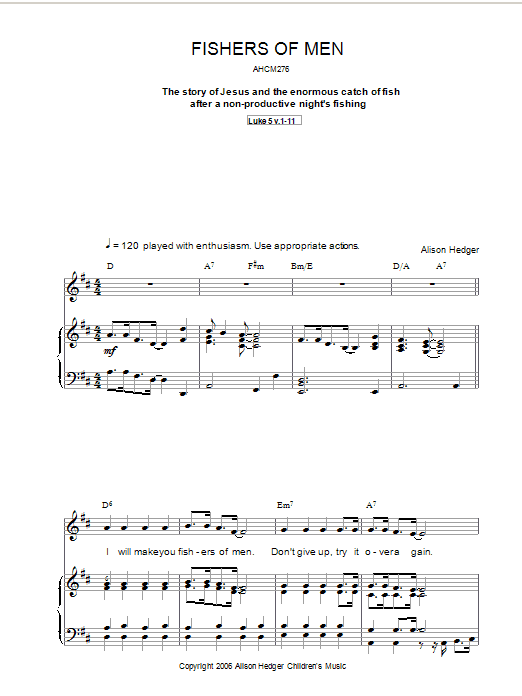 Alison Hedger Fishers Of Men sheet music, chords, lyrics - Printable PDF for Piano, Vocal & Guitar (Right-Hand Melody)