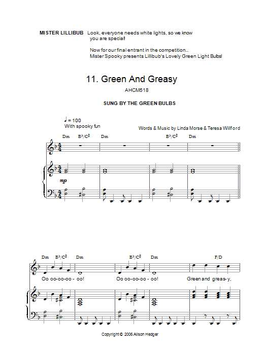 Alison Hedger "Green And Greasy (from Mister Lillibub's Lovely Light Bulbs)" Sheet Music