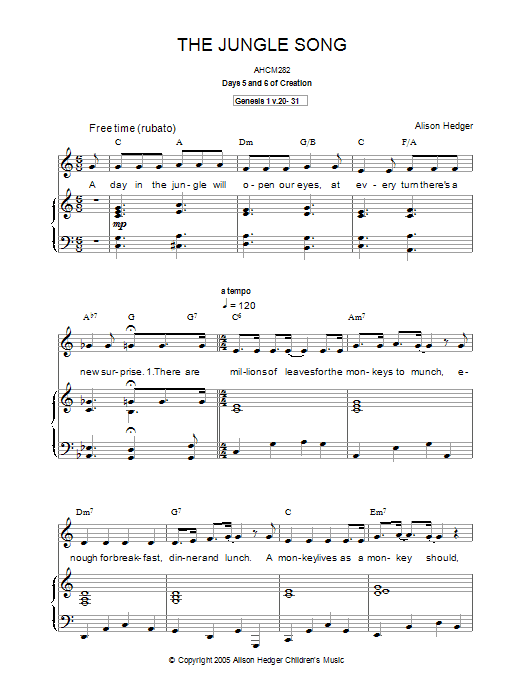 Alison Hedger The Jungle Song sheet music, chords, lyrics - Printable PDF for Piano, Vocal & Guitar (Right-Hand Melody)