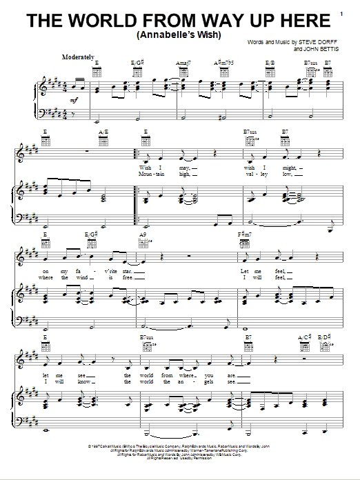 So, go ahead and download The World From Way Up Here (Annabelle's Wish) sheet music and start playing this wonderful score in bare minutes.