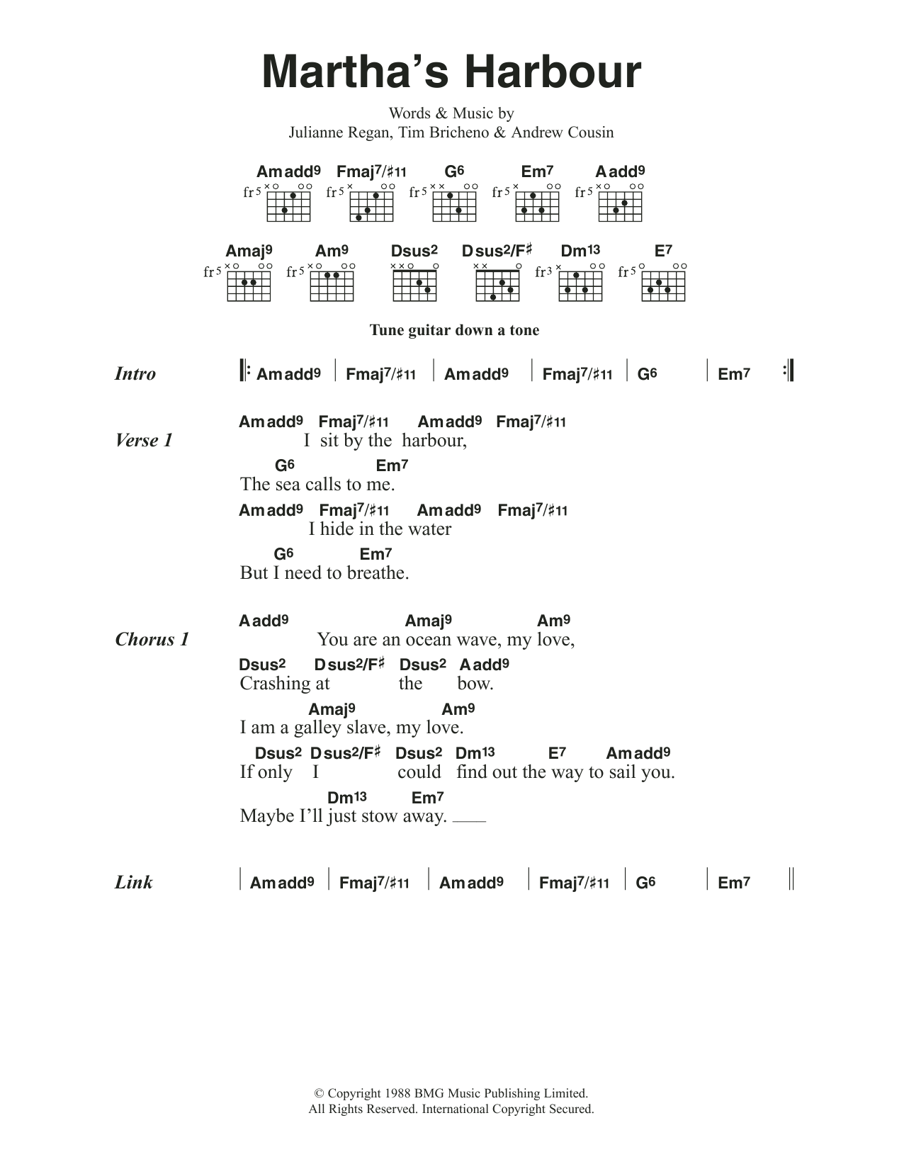 All About Eve Martha's Harbour sheet music, chords, lyrics - Printable PDF for Lyrics & Chords