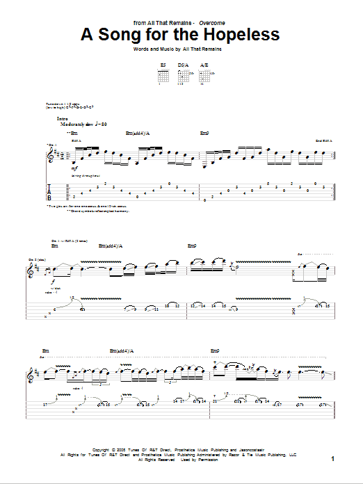 All That Remains A Song For The Hopeless sheet music, chords, lyrics - Printable PDF for Guitar Tab