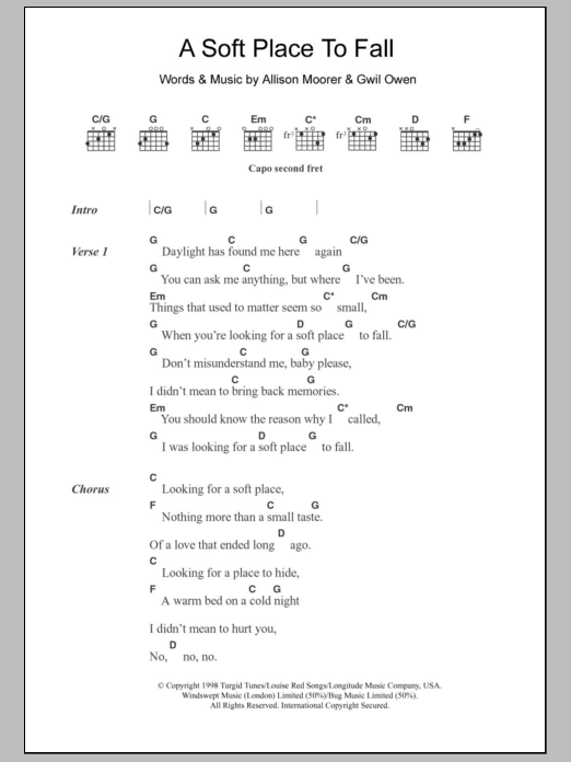Allison Moorer A Soft Place To Fall sheet music, chords, lyrics - Printable PDF for Lyrics & Chords