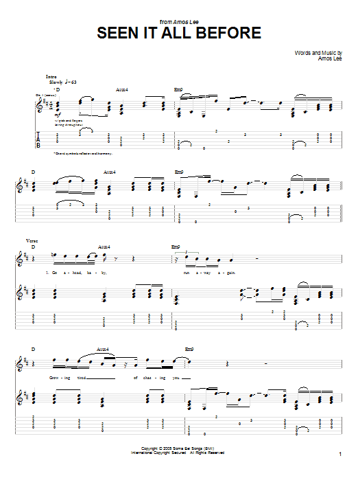 Amos Lee Seen It All Before sheet music, chords, lyrics - Printable PDF for Guitar Tab