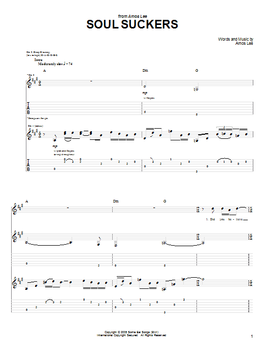 Download 9-Page Amos Lee Soul Suckers sheet music | Printable PDF Digital Notes