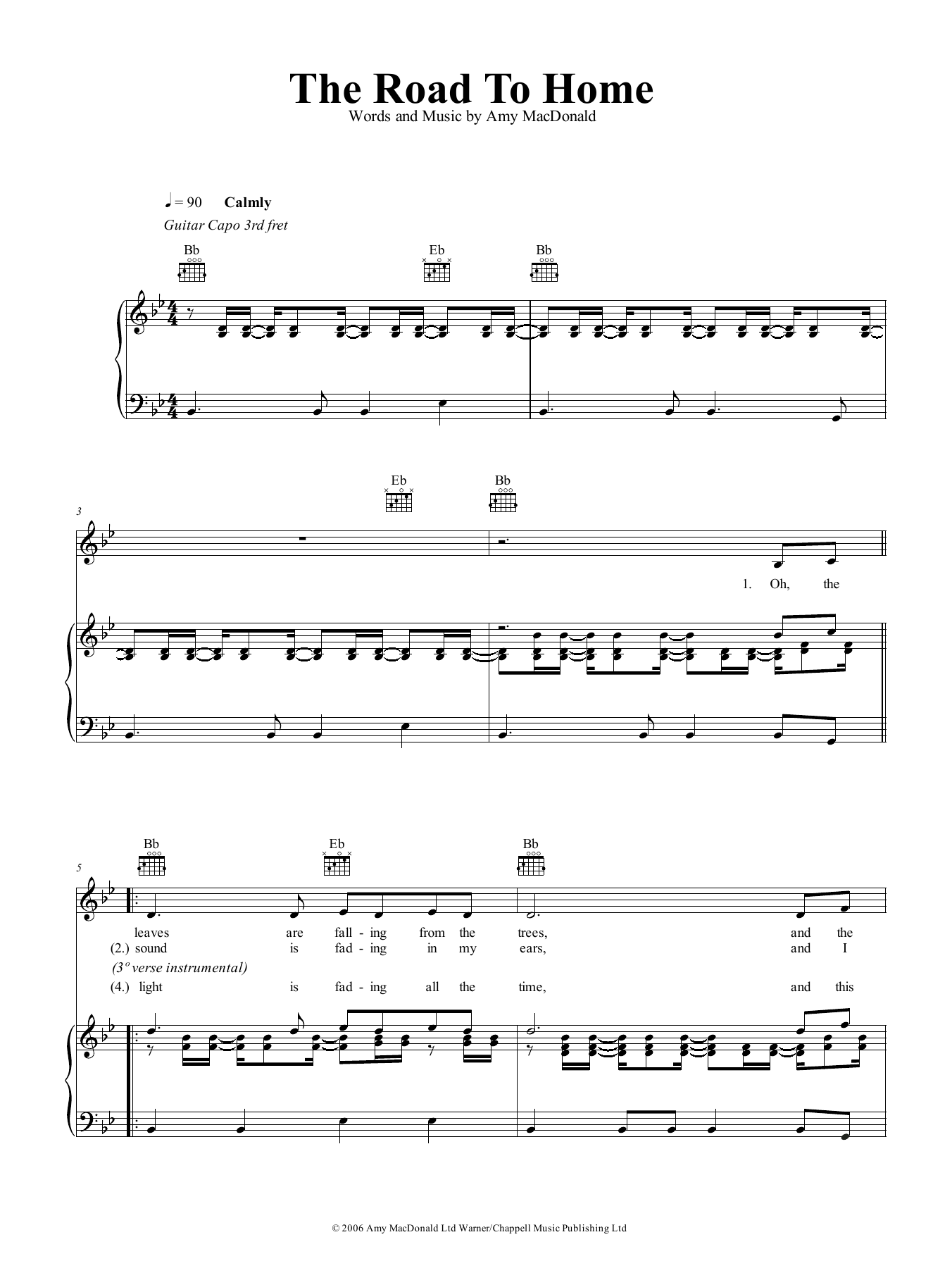 Amy MacDonald The Road To Home sheet music, chords, lyrics - Printable PDF for Piano, Vocal & Guitar (Right-Hand Melody)