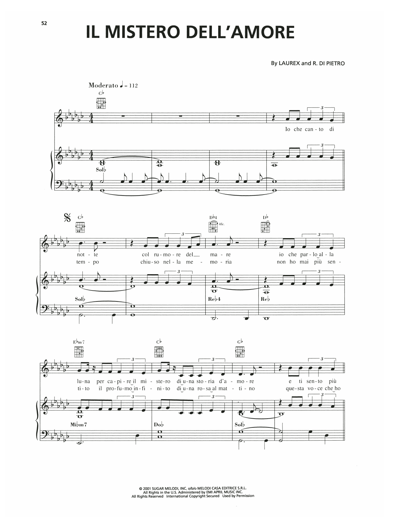 Andrea Bocelli Il Mistero Dell'Amore sheet music, chords, lyrics - Printable PDF for Piano, Vocal & Guitar Chords (Right-Hand Melody)