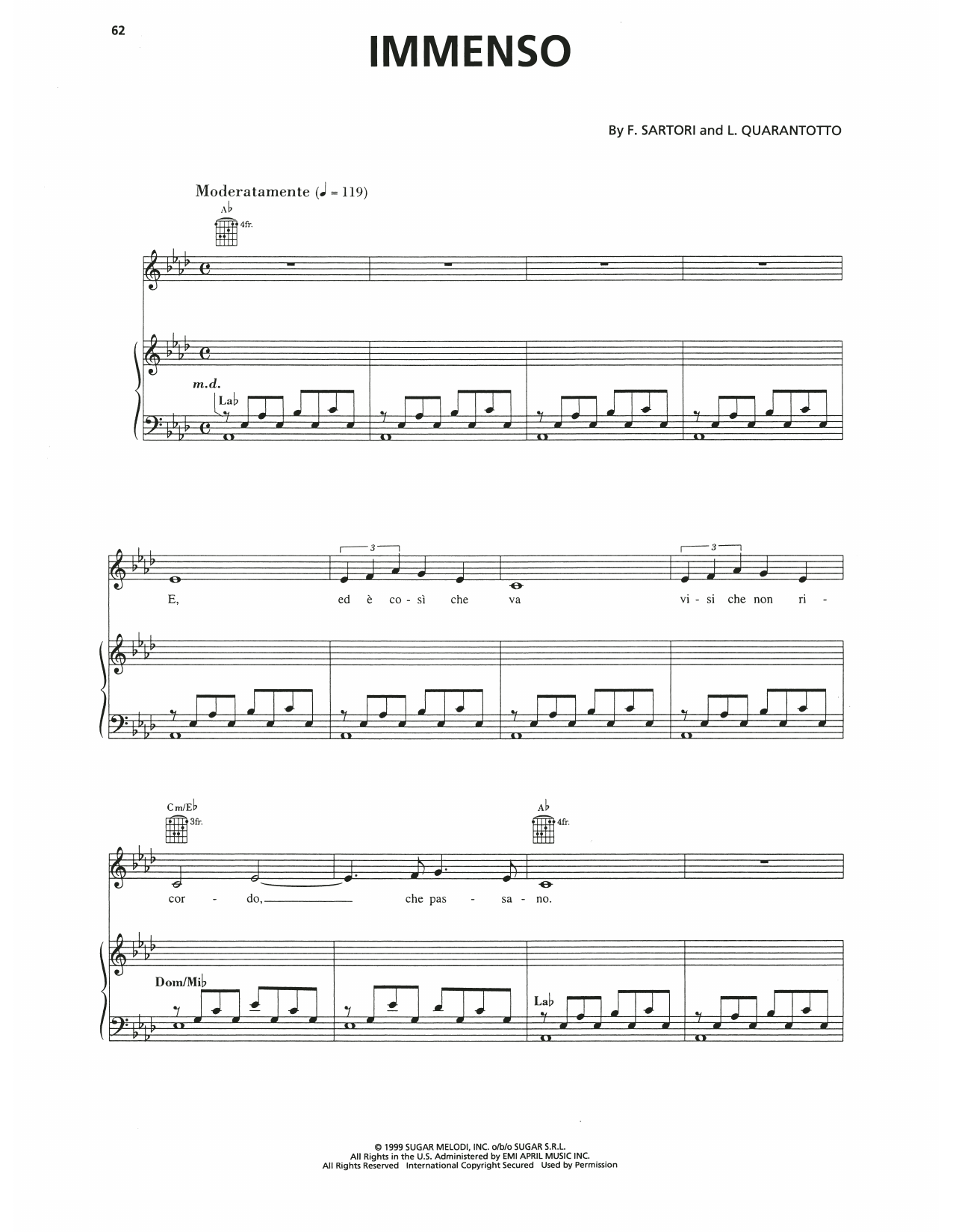 Andrea Bocelli Immenso sheet music, chords, lyrics - Printable PDF for Piano, Vocal & Guitar Chords (Right-Hand Melody)