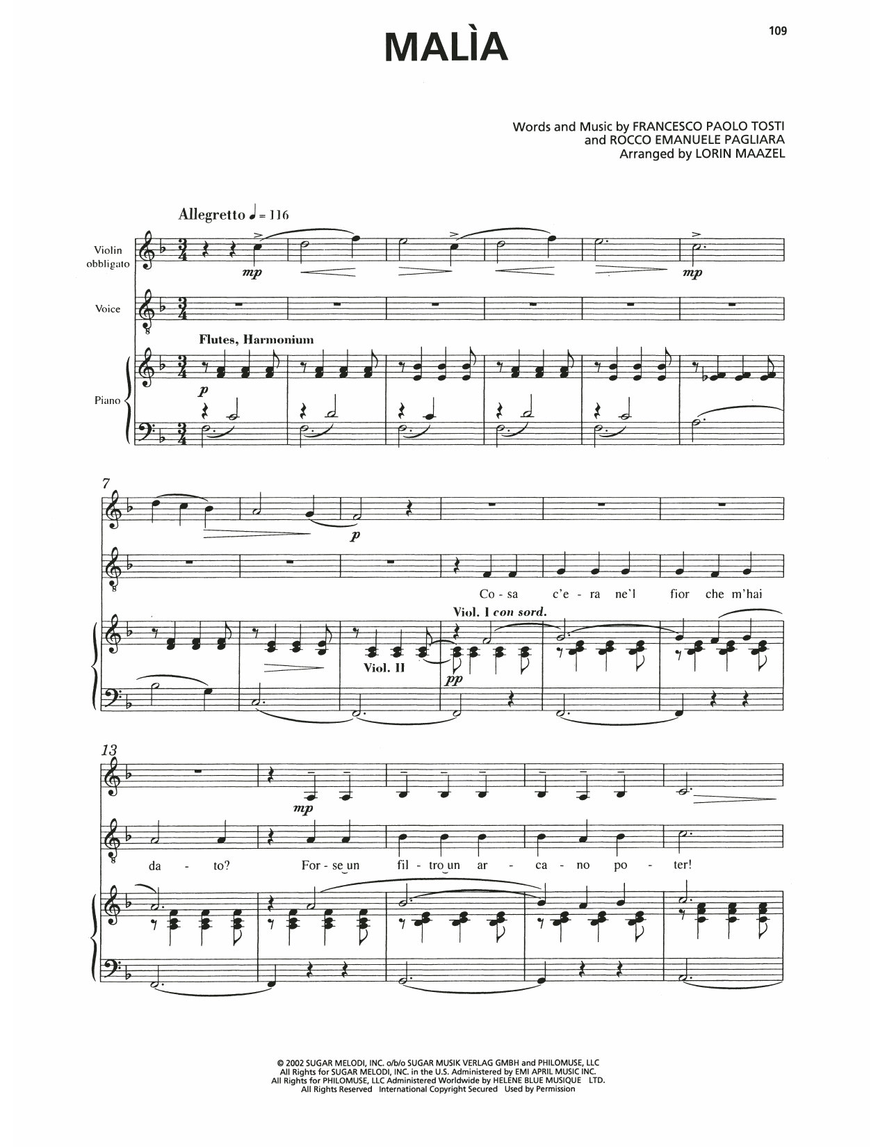 Andrea Bocelli Malia sheet music, chords, lyrics - Printable PDF for Piano, Vocal & Guitar Chords (Right-Hand Melody)