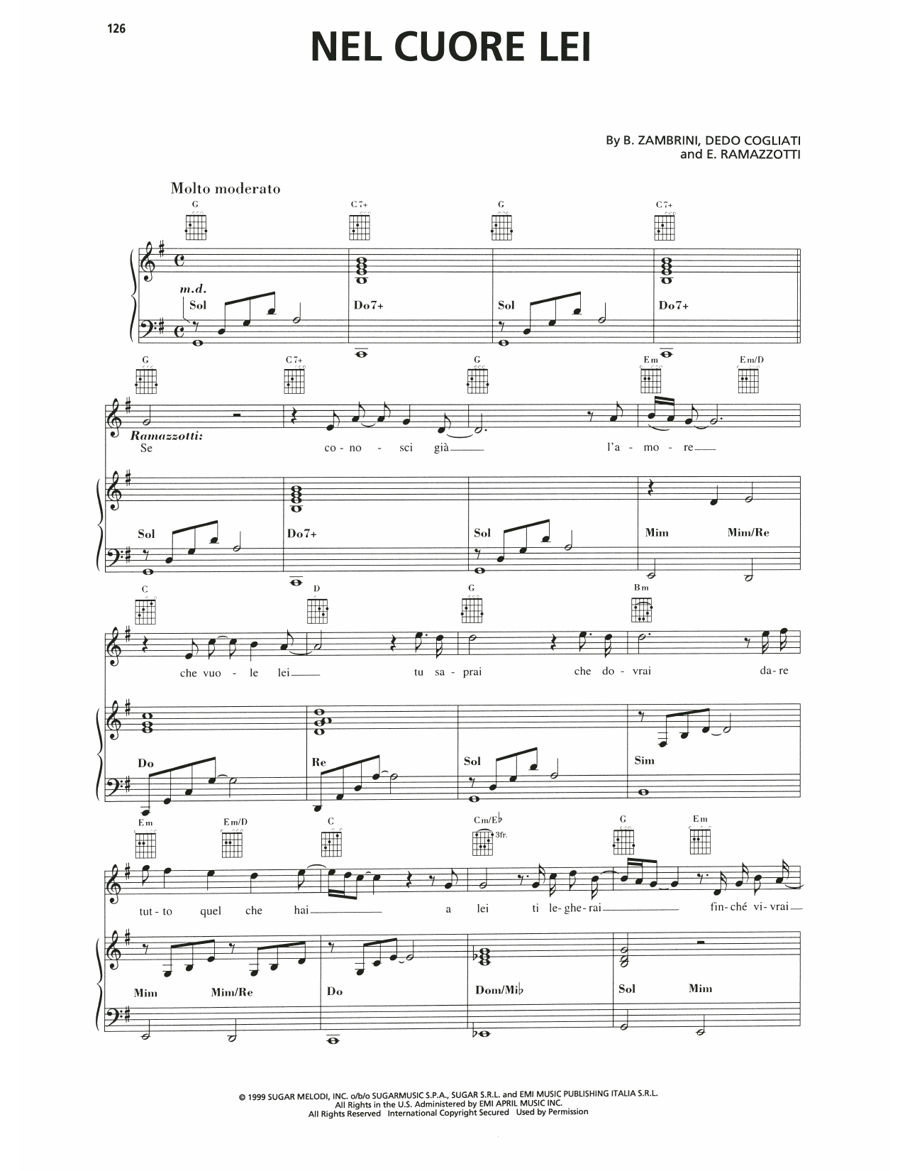 Andrea Bocelli Nel Cuore Lei sheet music, chords, lyrics - Printable PDF for Piano, Vocal & Guitar Chords (Right-Hand Melody)