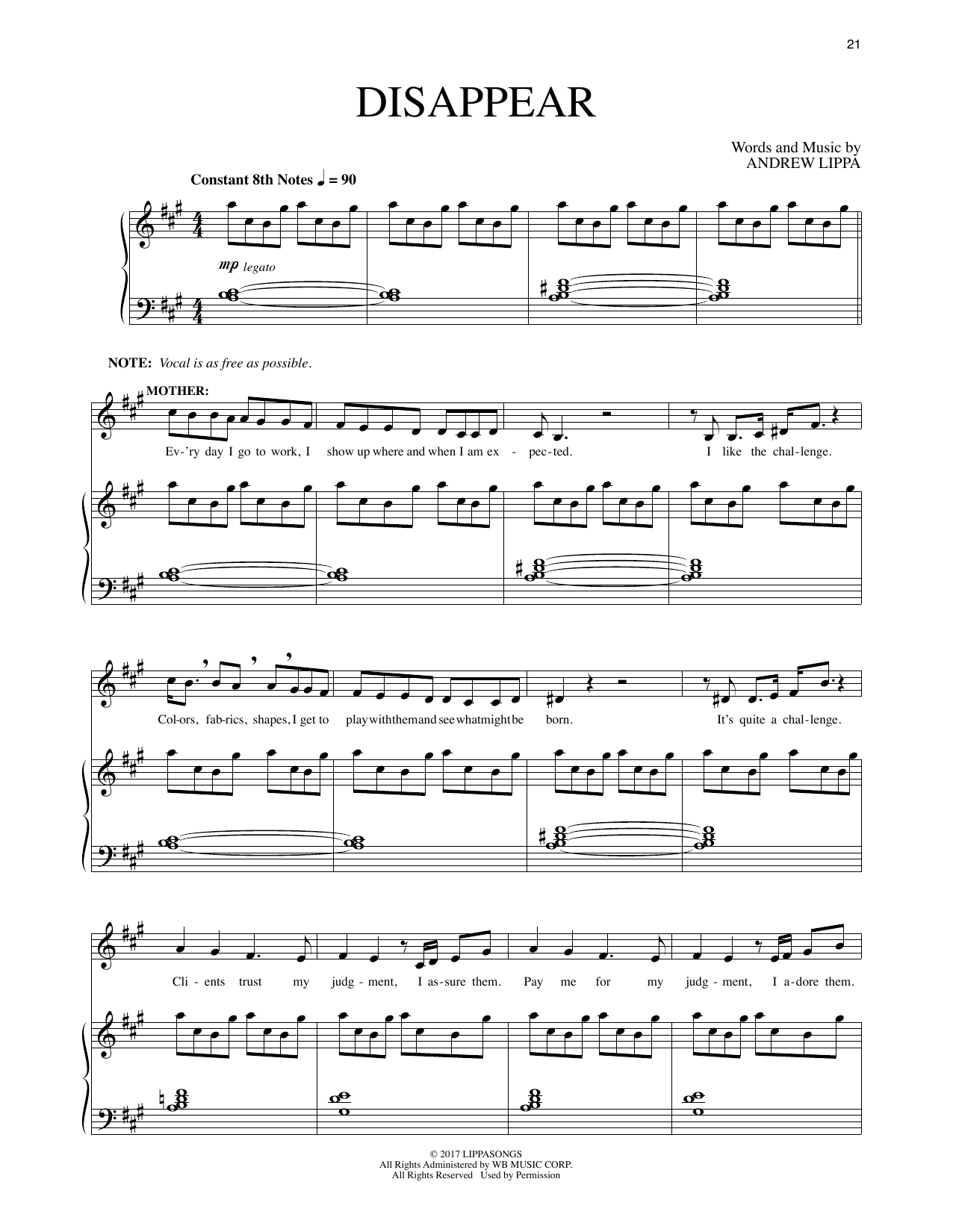 Andrew Lippa "Disappear (from The Man In The Ceiling)" Sheet Music