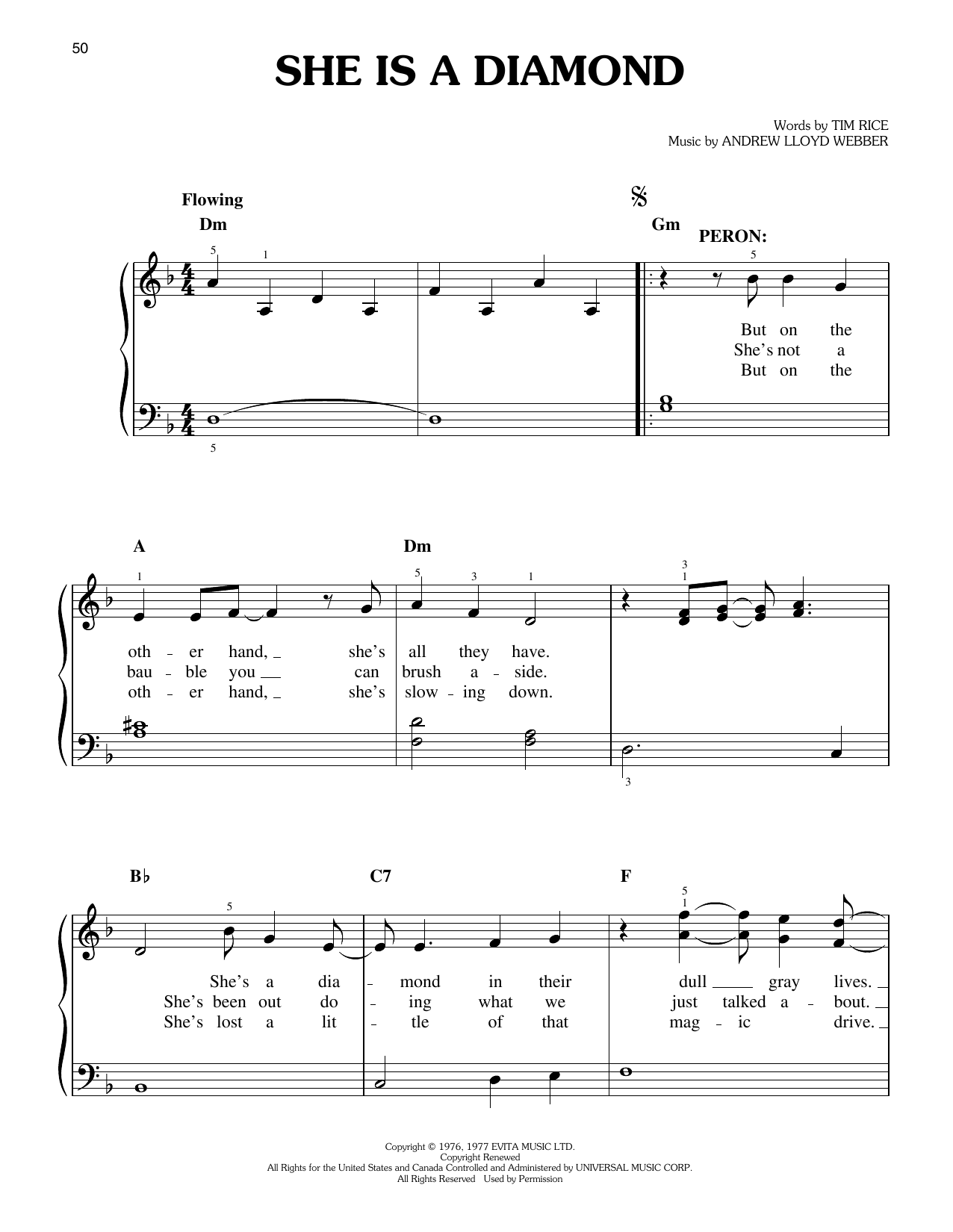 Download 3-Page Andrew Lloyd Webber She Is A Diamond (from Evita) sheet music | Printable PDF Digital Notes