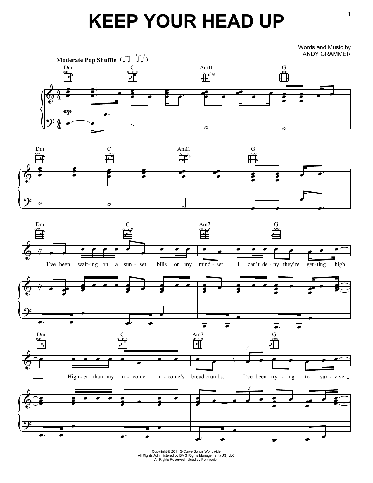 Andy Grammer Keep Your Head Up sheet music, chords, lyrics - Printable PDF for Piano, Vocal & Guitar (Right-Hand Melody)