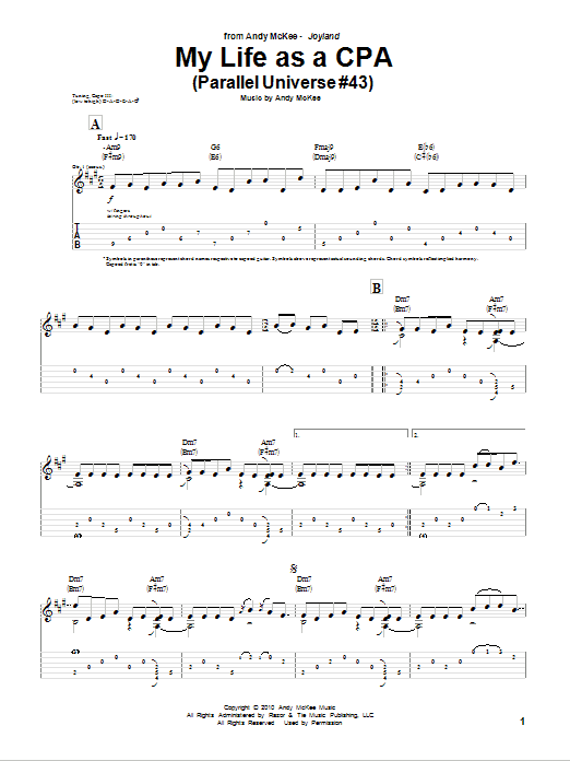 Download 5-Page Andy McKee My Life As A CPA (Parallel Universe #43) sheet music | Printable PDF Digital Notes