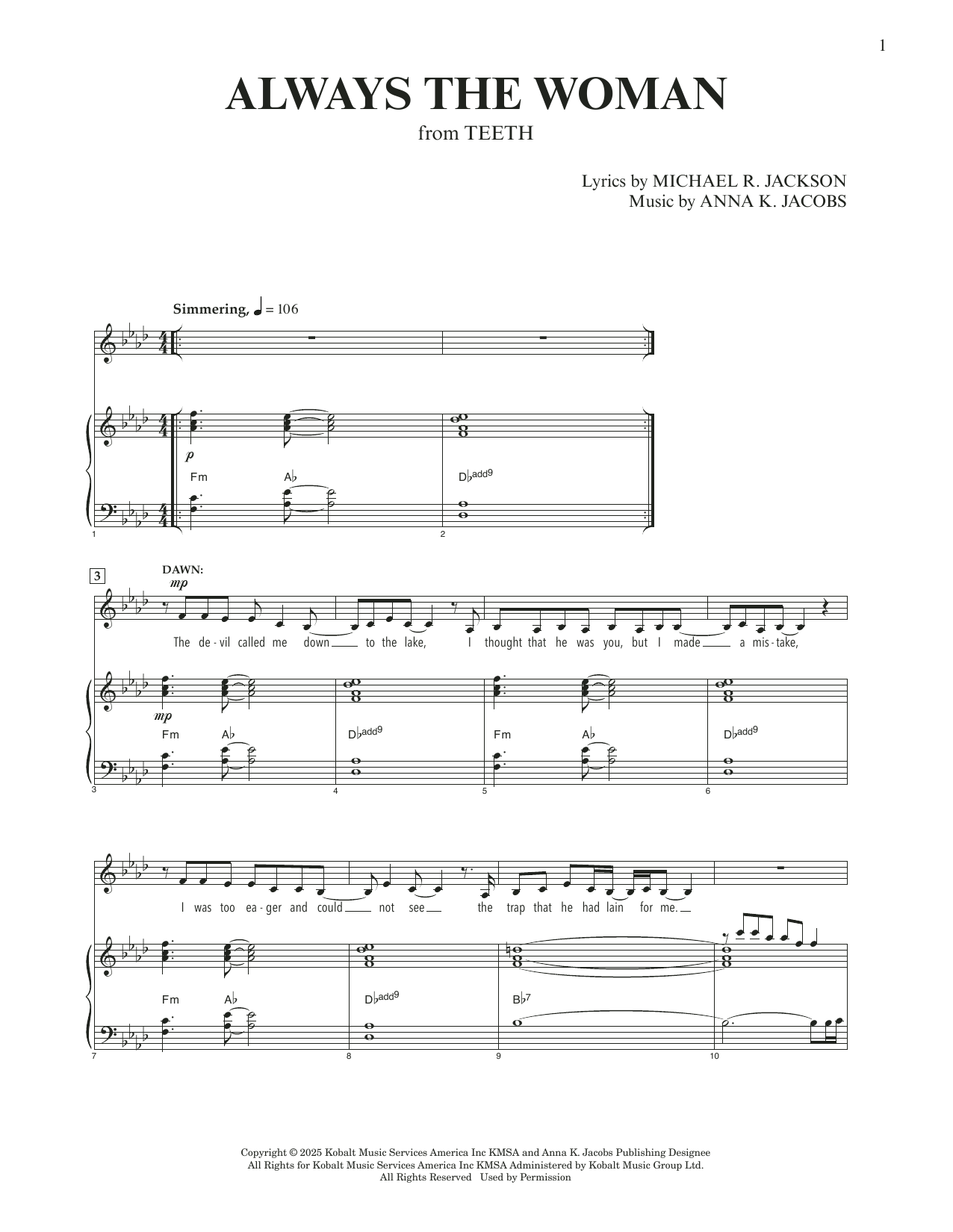 Anna K. Jacobs and Michael R. Jackson "Always The Woman (from Teeth) (Original Key)" Sheet Music