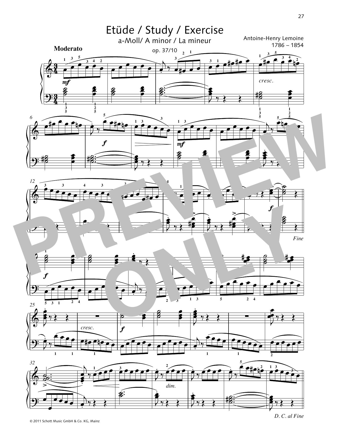 Antoine-Henry Lemoine Study A minor sheet music, chords, lyrics - Printable PDF for Piano Solo
