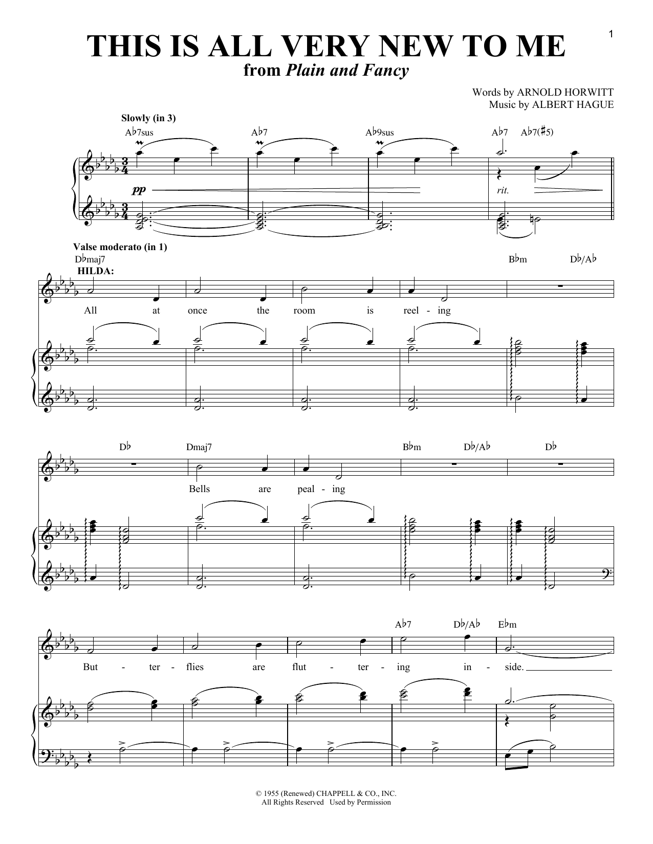 Arnold Horwitt and Albert Hague This Is All Very New To Me (from Plain and Fancy) sheet music, chords, lyrics - Printable PDF for Piano & Vocal