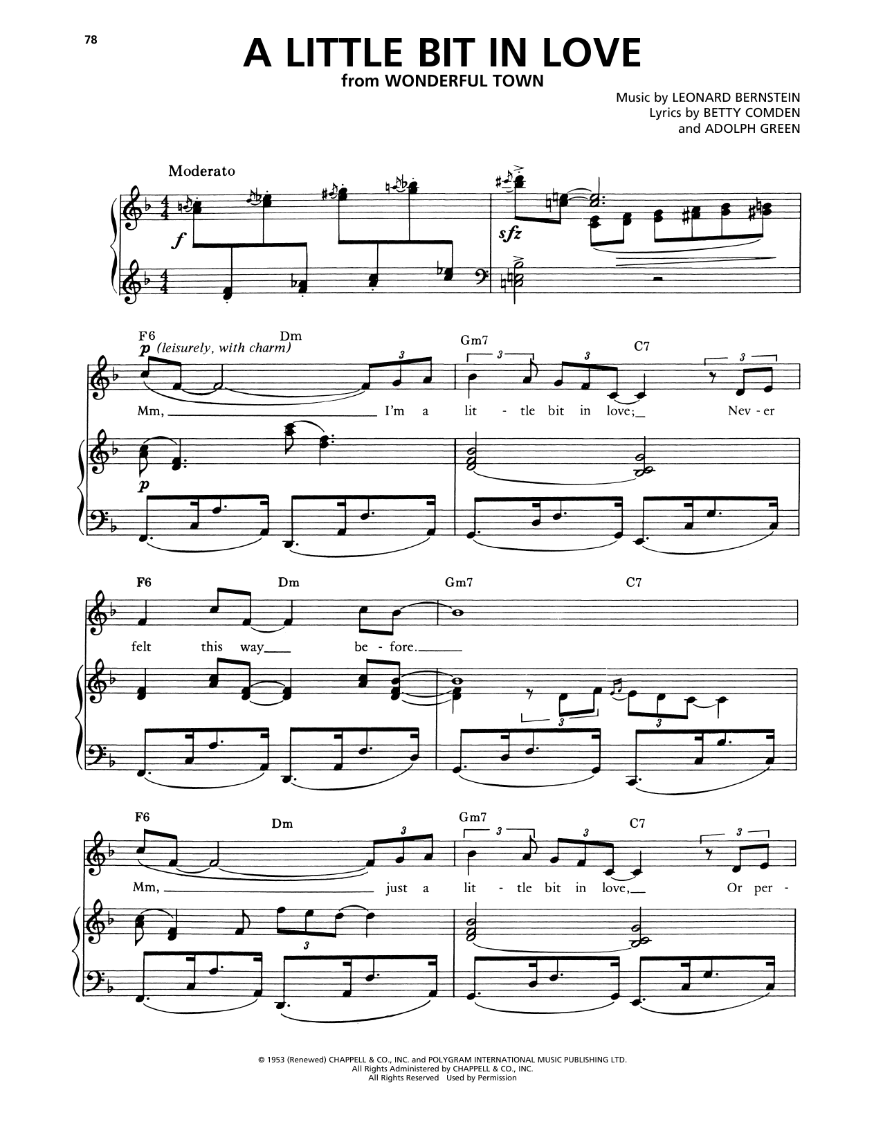 So, go ahead and download A Little Bit In Love (from Wonderful Town) sheet music and start playing this wonderful score in bare minutes.