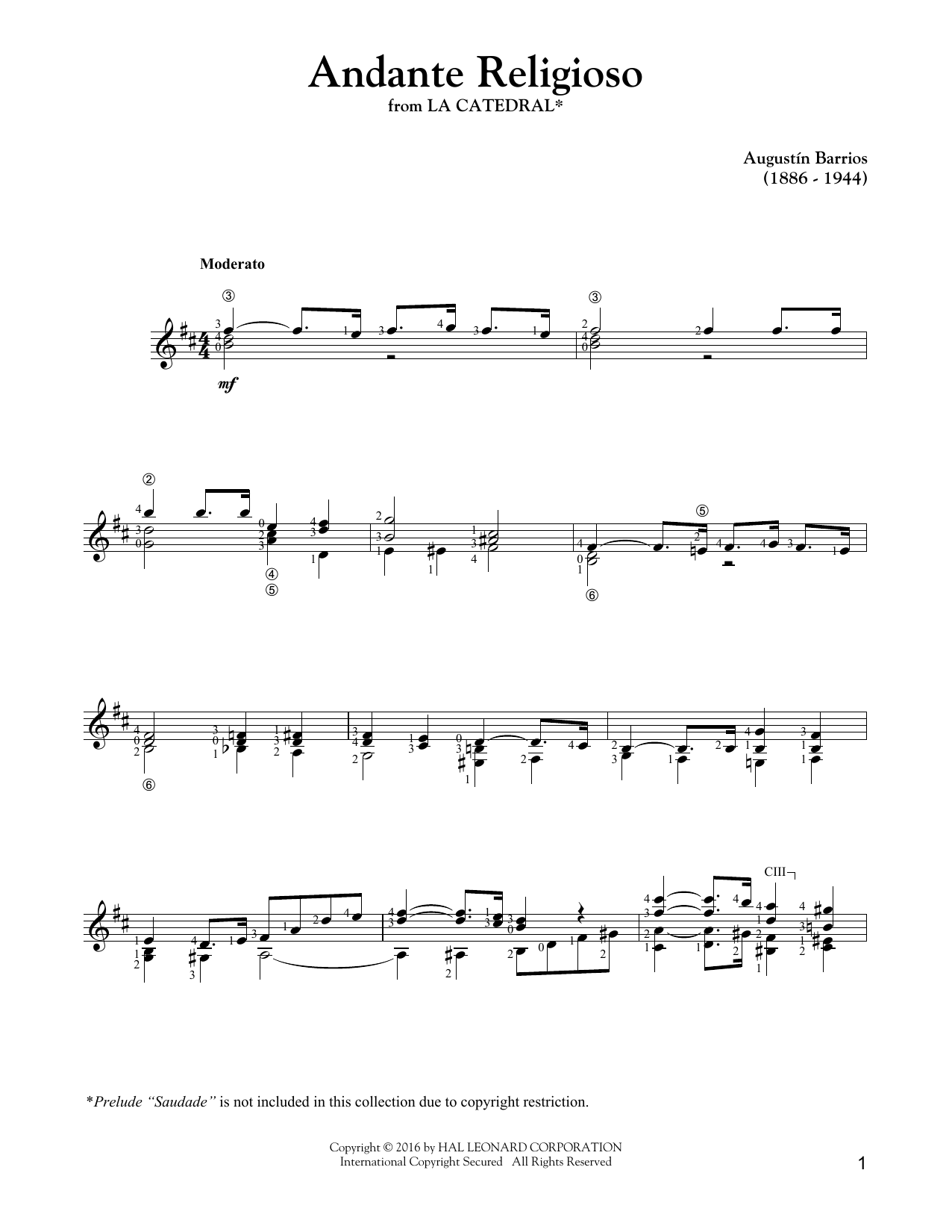 Augustin Barrios Mangore "Andante Religioso" Sheet Music