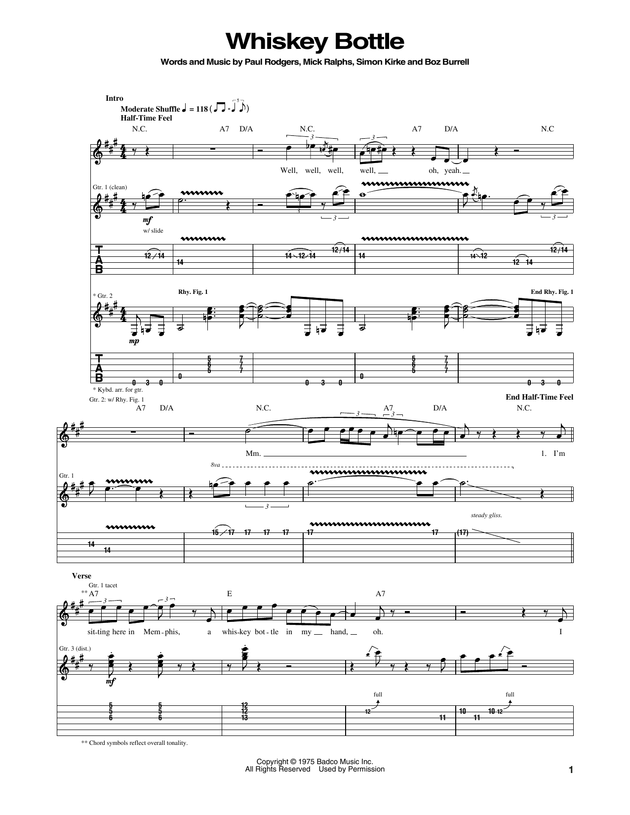 Bad Company Whiskey Bottle sheet music, chords, lyrics - Printable PDF for Guitar Tab