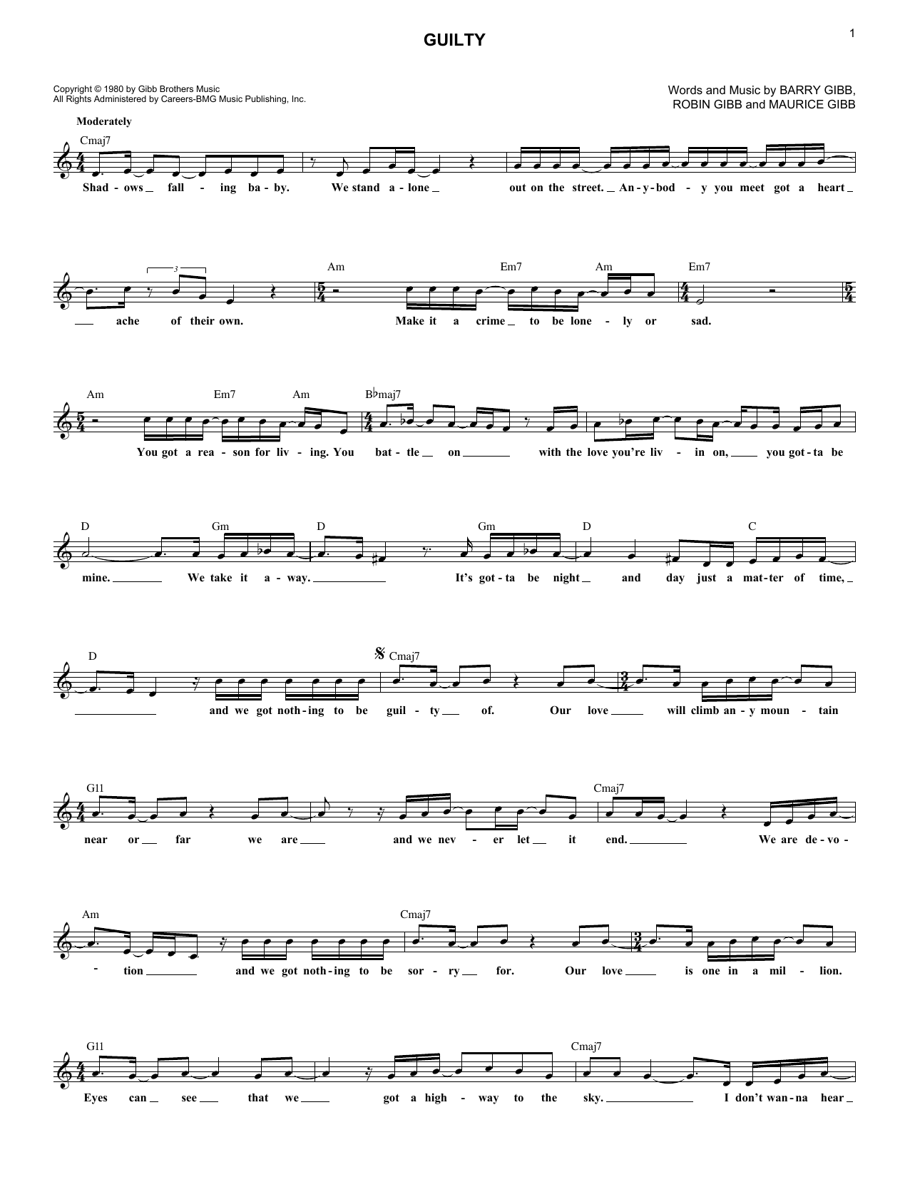 Download 2-Page Barbra Streisand Guilty sheet music | Printable PDF Digital Notes