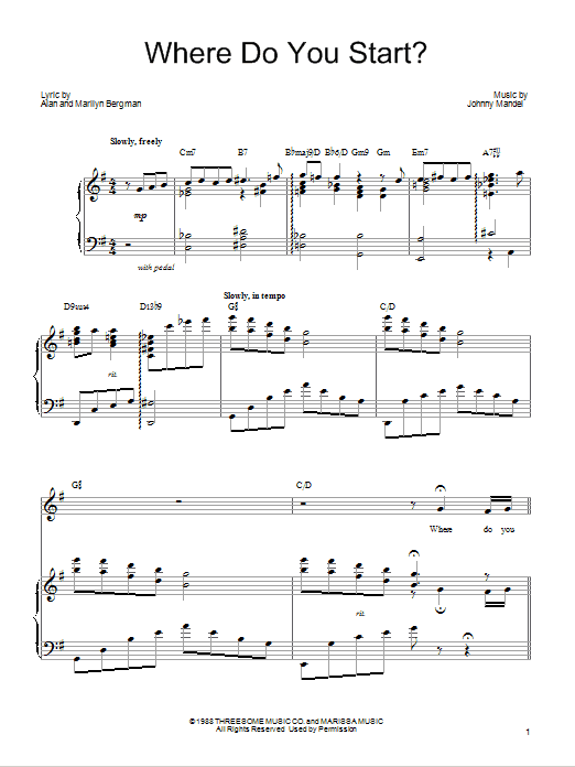 So, go ahead and download Where Do You Start? sheet music and start playing this wonderful score in bare minutes.