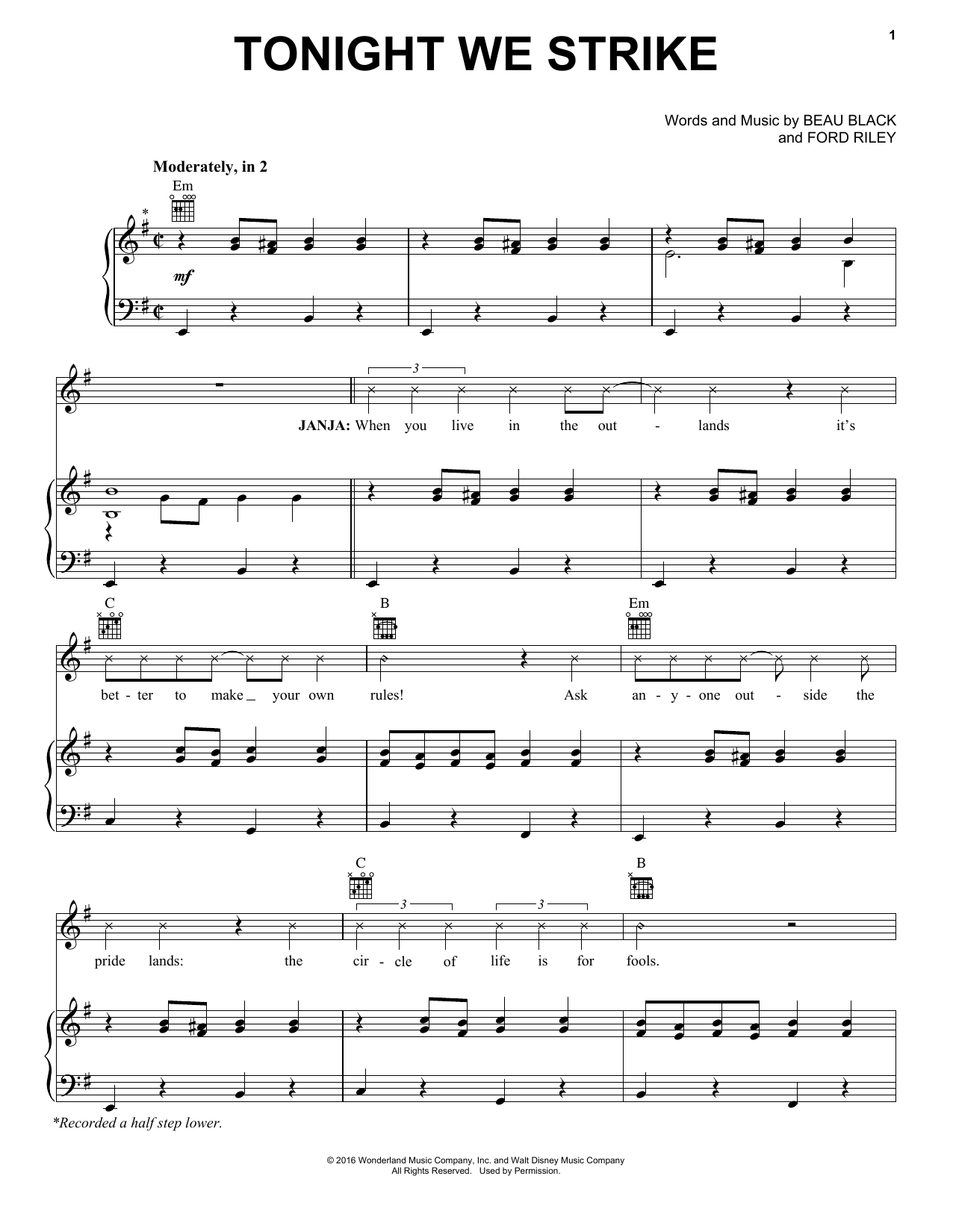Beau Black Tonight We Strike sheet music, chords, lyrics - Printable PDF for Piano, Vocal & Guitar (Right-Hand Melody)