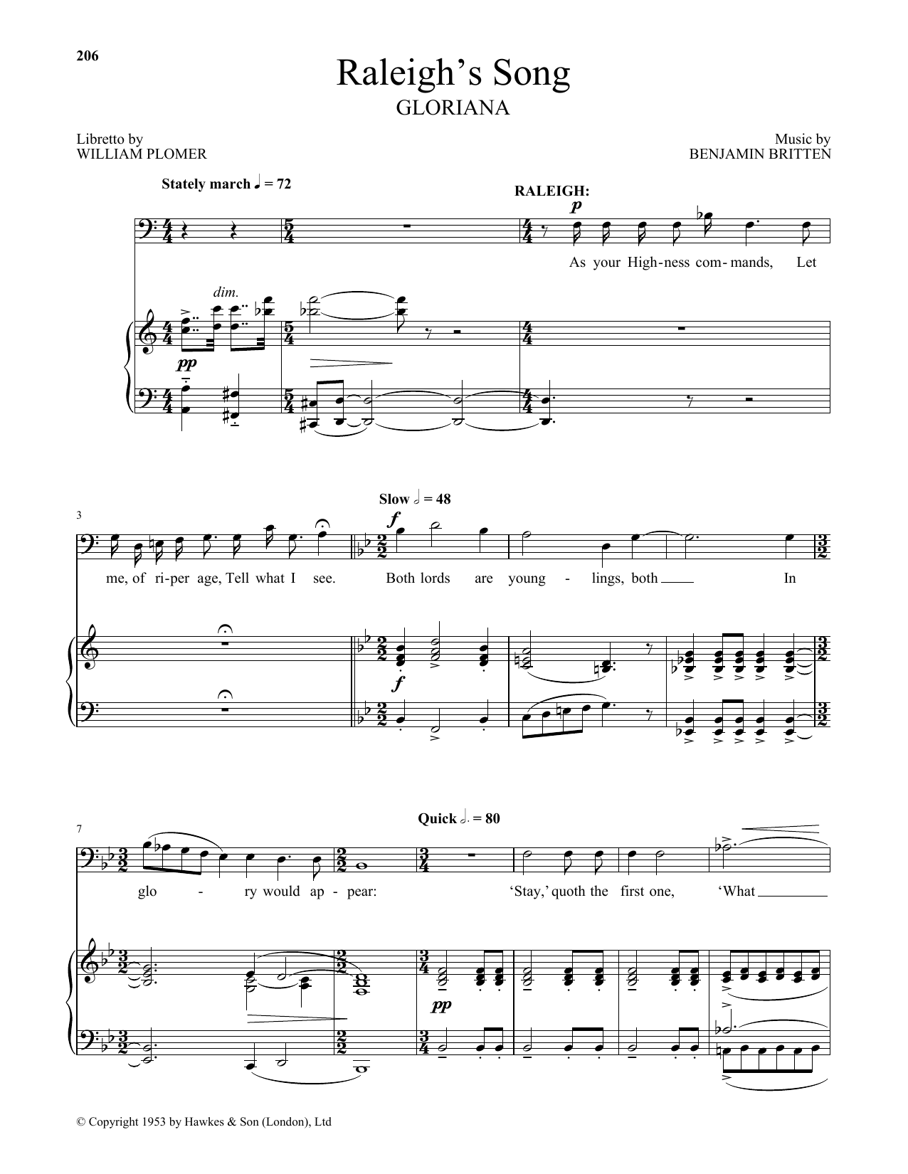 Benjamin Britten Raleigh's Song (from Gloriana) sheet music, chords, lyrics - Printable PDF for Piano & Vocal