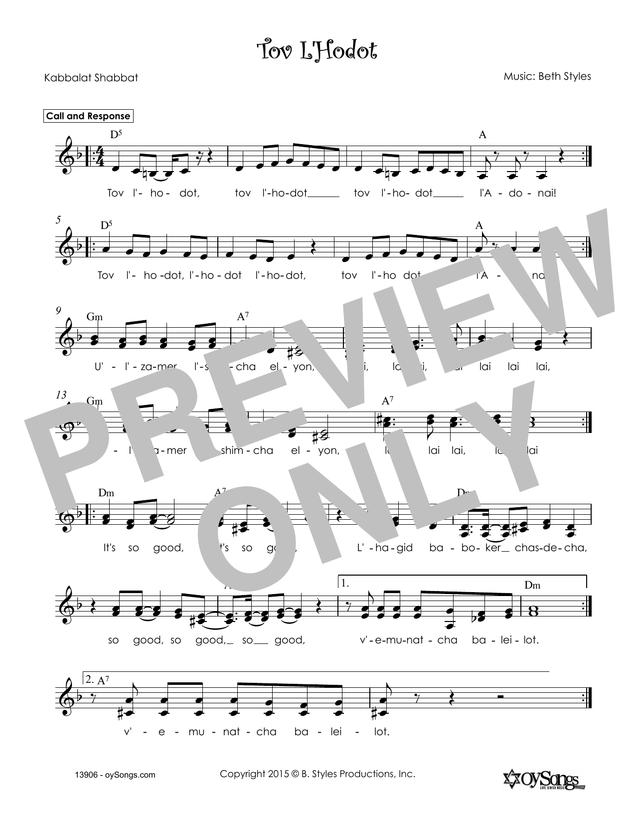 Beth Styles Tov L'Hodot sheet music, chords, lyrics - Printable PDF for Melody Line, Lyrics & Chords