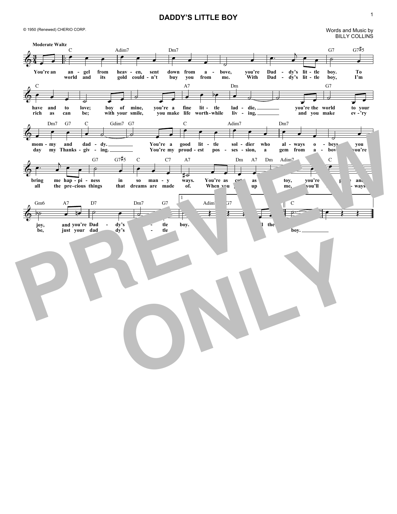 Download 1-Page Billy Collins Daddy's Little Boy sheet music | Printable PDF Digital Notes