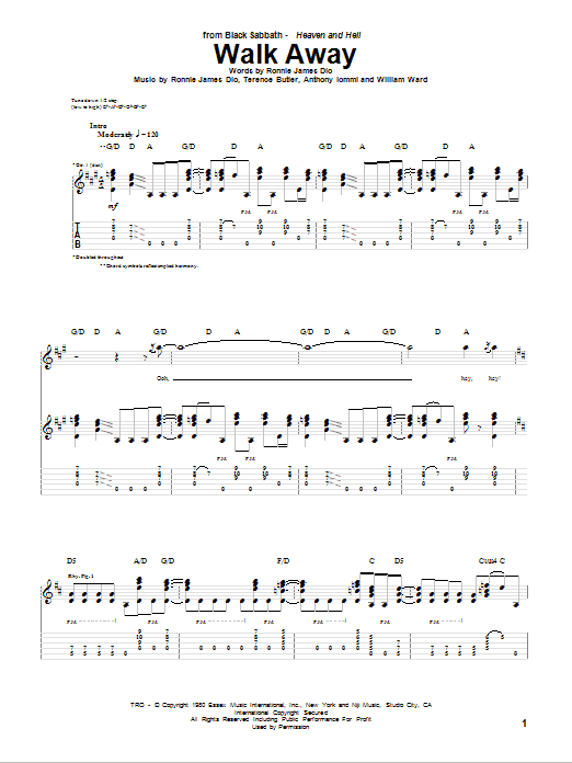 Black Sabbath Walk Away sheet music, chords, lyrics - Printable PDF for Guitar Tab
