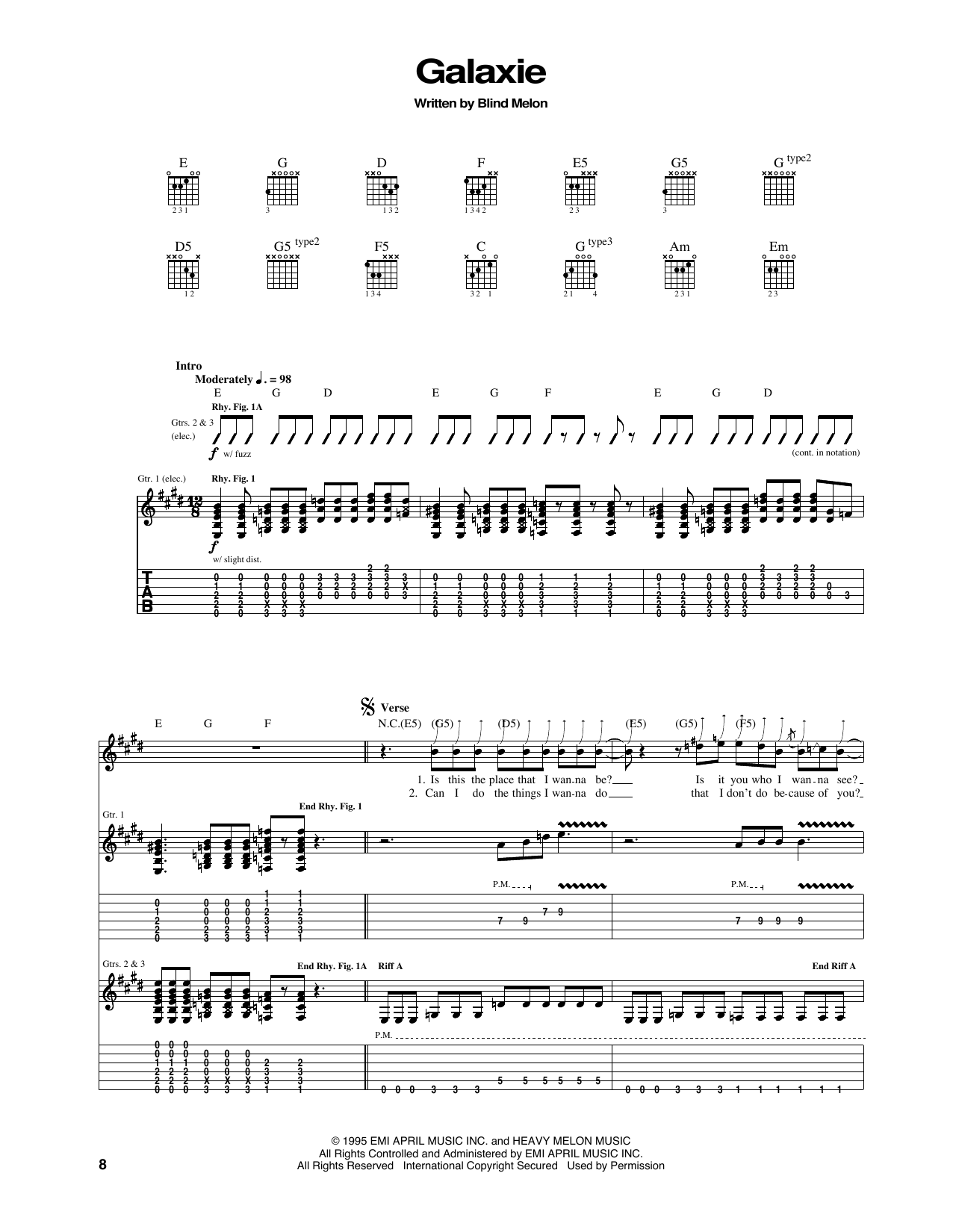 Download 5-Page Blind Melon Galaxie sheet music | Printable PDF Digital Notes