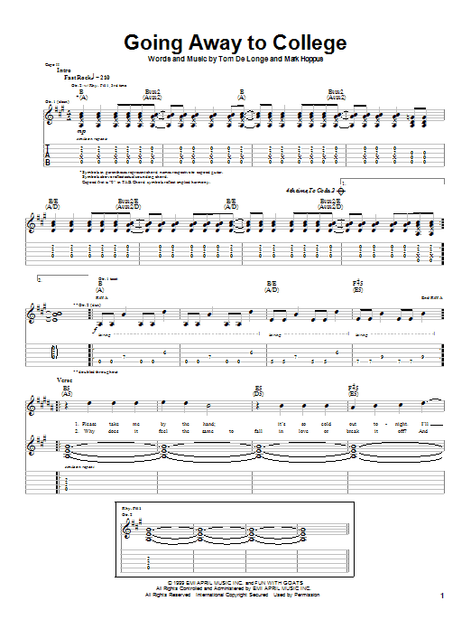 Blink-182 Going Away To College sheet music, chords, lyrics - Printable PDF for Guitar Tab