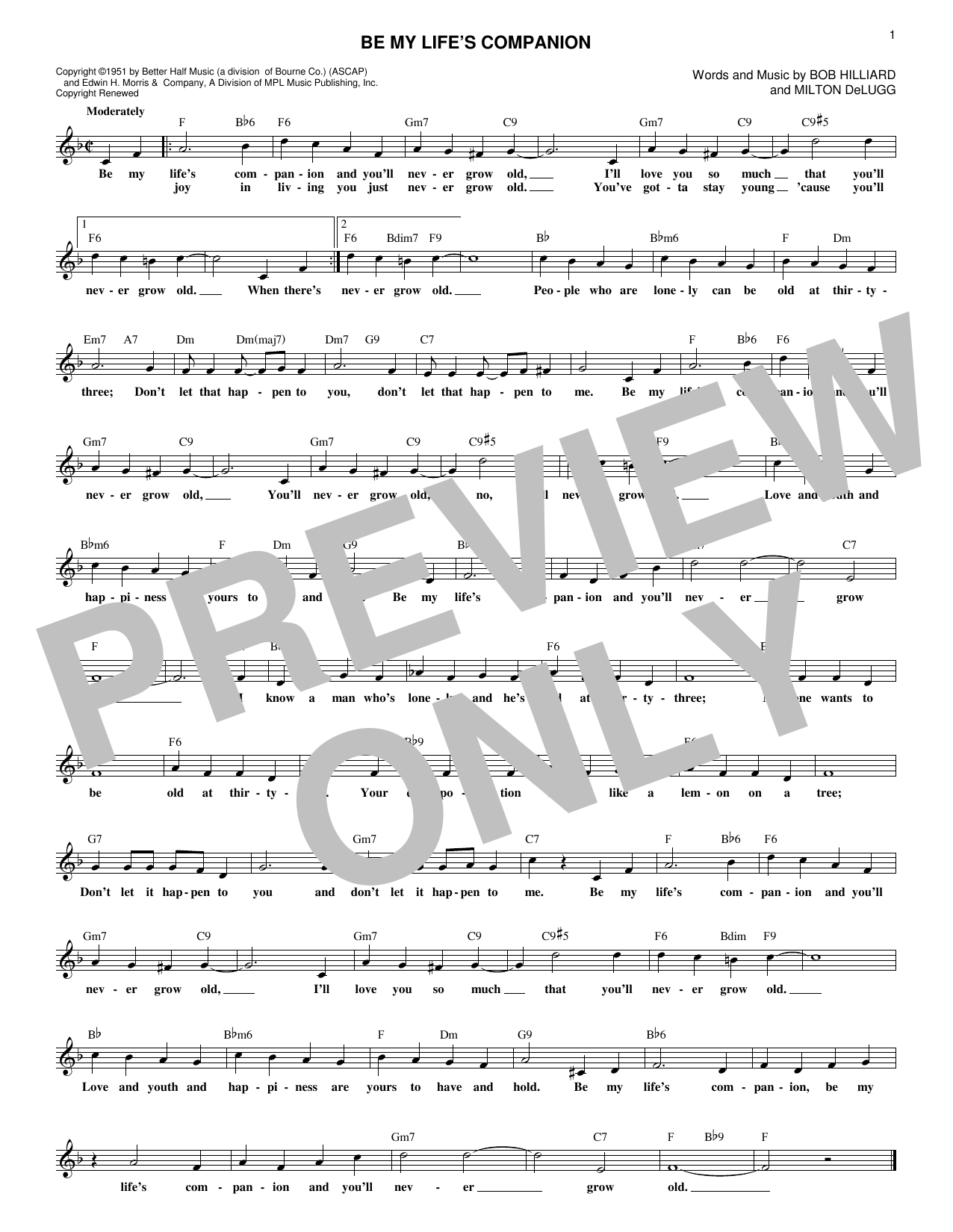 Bob Hilliard Be My Life's Companion sheet music, chords, lyrics - Printable PDF for Melody Line, Lyrics & Chords