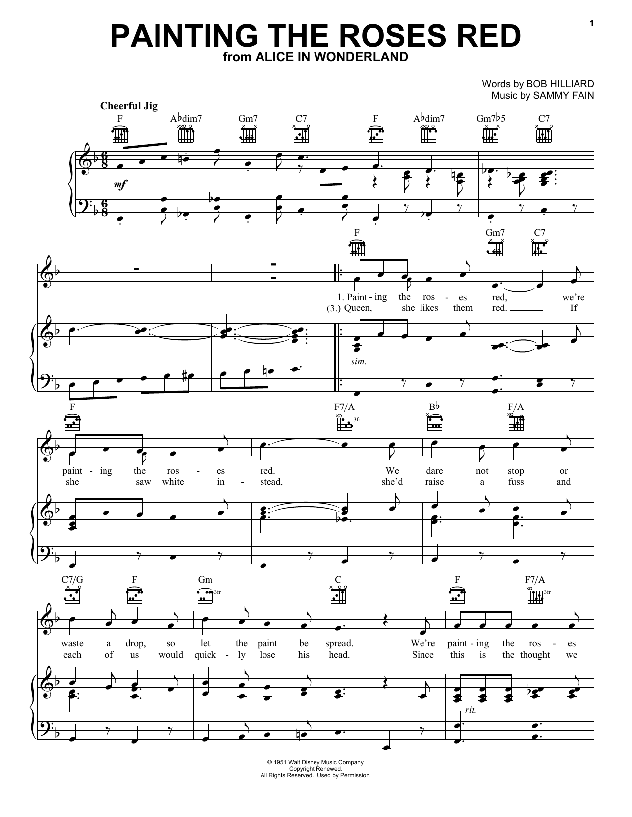 Bob Hilliard Painting The Roses Red sheet music, chords, lyrics - Printable PDF for Piano, Vocal & Guitar (Right-Hand Melody)