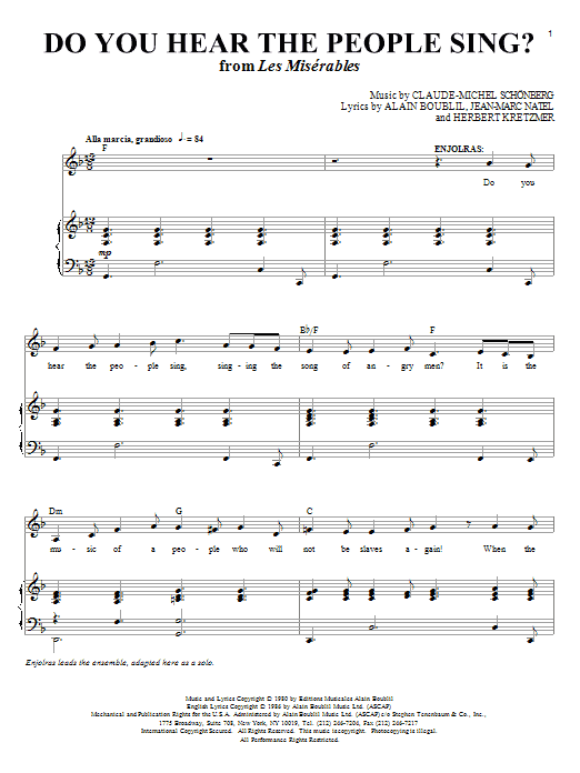 Boublil and Schonberg Do You Hear The People Sing? (from Les Miserables) sheet music, chords, lyrics - Printable PDF for Piano, Vocal & Guitar (Right-Hand Melody)