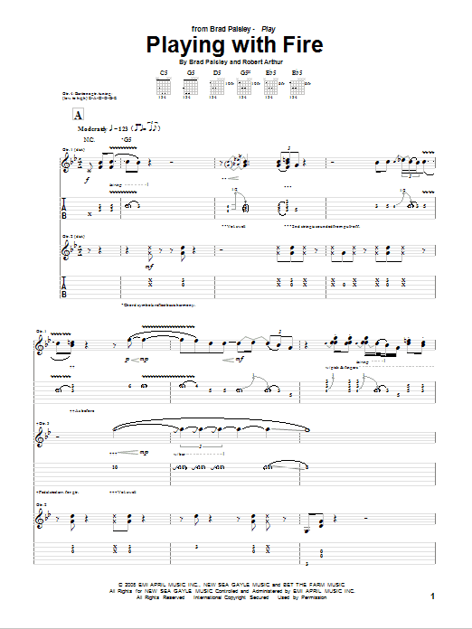 Brad Paisley Playing With Fire sheet music, chords, lyrics - Printable PDF for Guitar Tab