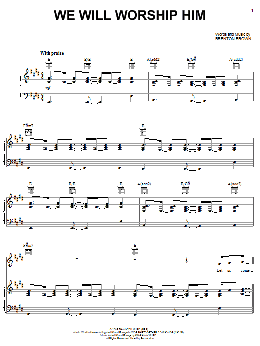 Brenton Brown "We Will Worship Him" Sheet Music