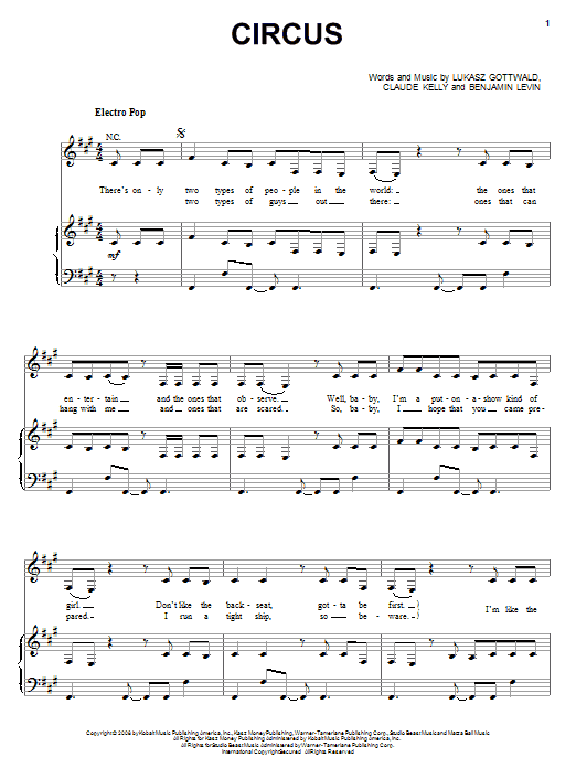 Britney Spears Circus sheet music, chords, lyrics - Printable PDF for Piano, Vocal & Guitar (Right-Hand Melody)