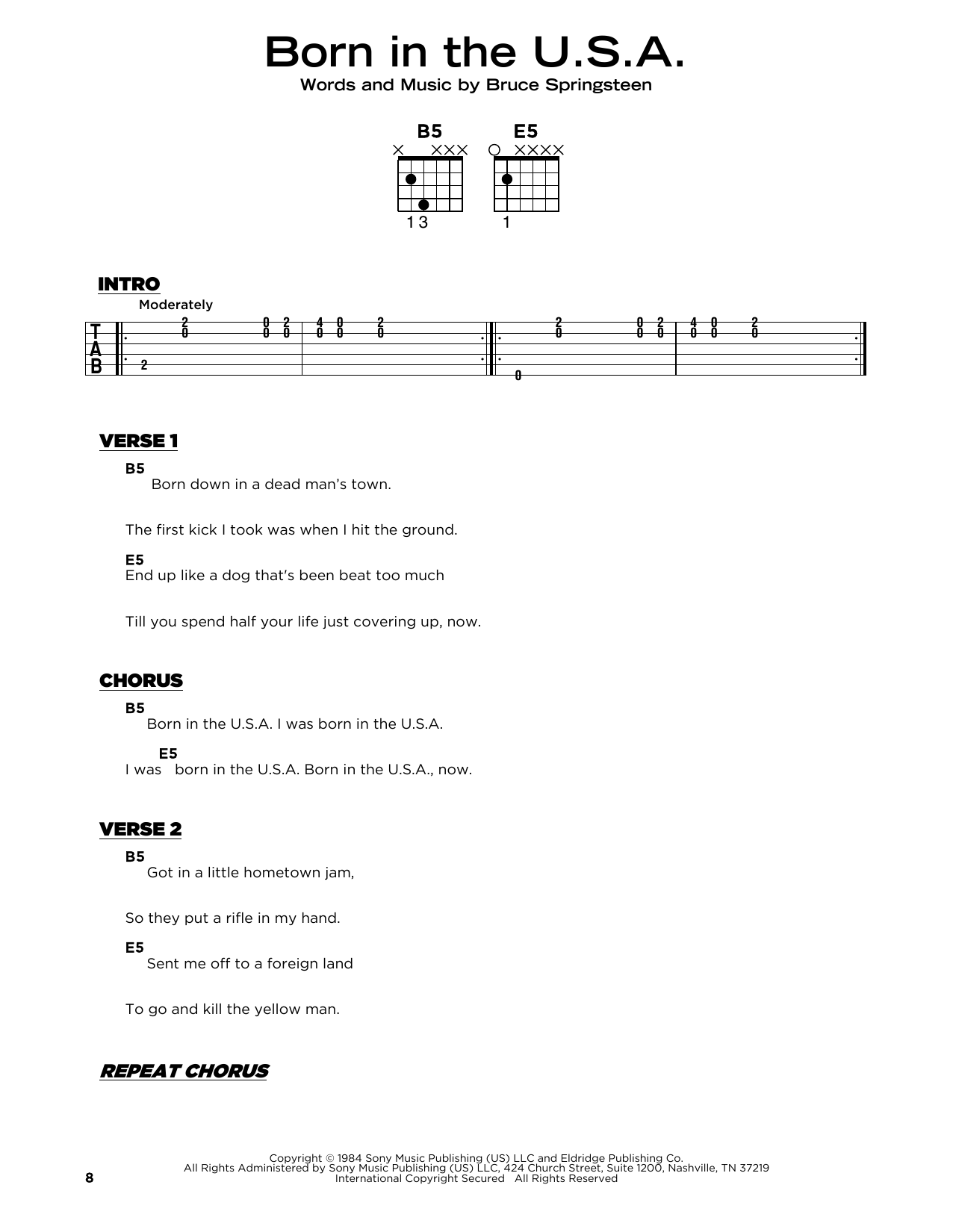 Bruce Springsteen "Born In The U.S.A." Sheet Music